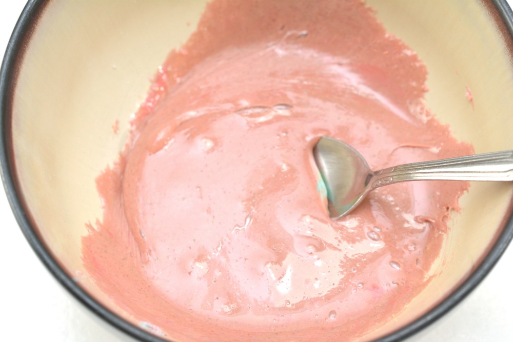 Once the gummy worms have melted, stir them thoroughly with a spoon to mix the colors well.